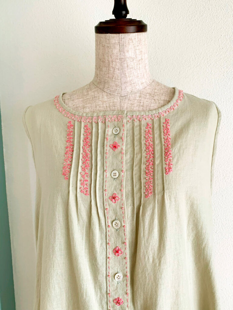 一番上のボタンを開けて着ることを想定して、見返しをちゃんと付ければよかったかなー。